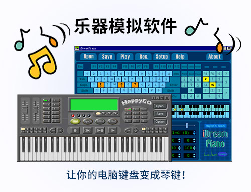 朋友:您想制作电脑乐谱并播放吗?想制作动态谱视频吗?想让电脑键盘秒变钢琴和电子琴吗?那就来到HappyEO音乐软件工作室,试试我们专门为广大音乐爱好者设计的HappyEO系列音乐软件吧。