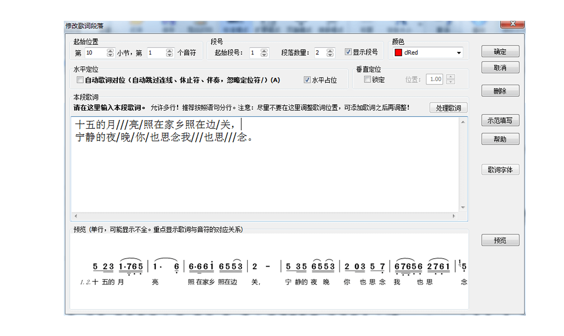 首创音值组合输入法,快速高效录入音符。 歌词自动对位,半自动对位,可视化调整。 多种复制粘贴手段,快速录入符号指法。