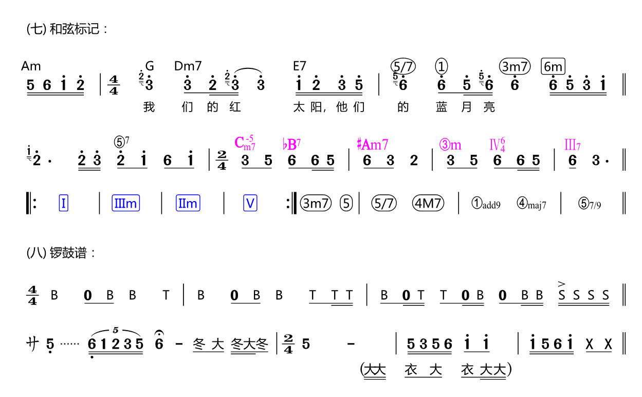 有专门的和弦标记功能,还内置了上千种符号,可以制作各种复杂的民乐谱,器乐谱。