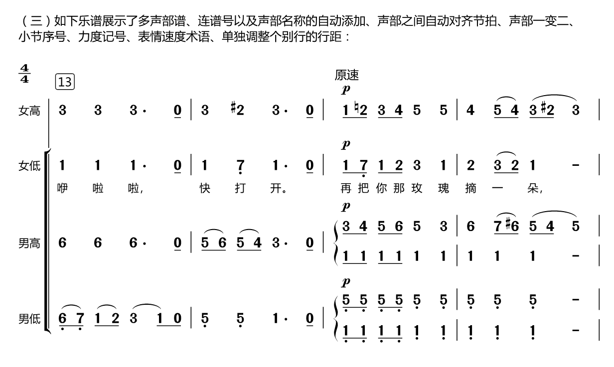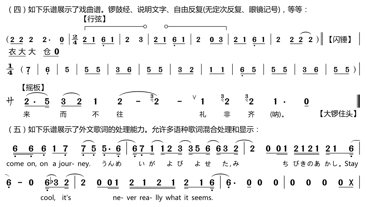 制作任意复杂的简谱(合唱谱、戏曲谱、器乐谱、总谱), 导出各种常见格式,矢量高清,出版印刷. 强大的播放能力,甚至还可以录音录屏制作动态谱!